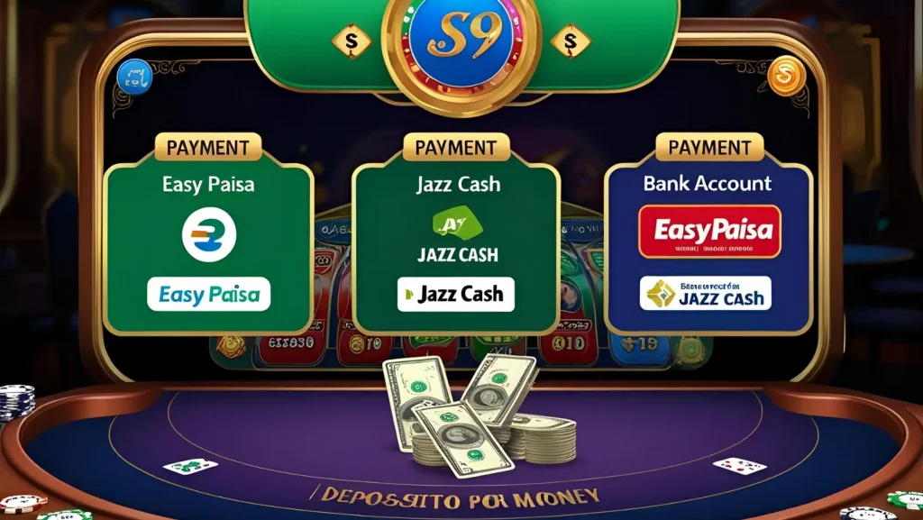 To deposit money in the S9 game, the available payment methods are Jazz cash and a Bank account. You can deposit money via these simple payment methods. The minimum amount to deposit is 500 RS, while the maximum amount to deposit is 5000 RS. After depositing money, you will receive a deposit bonus.